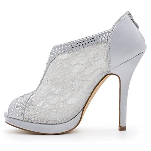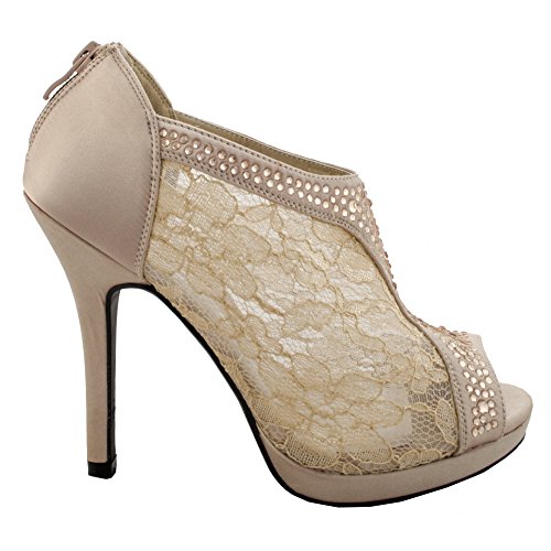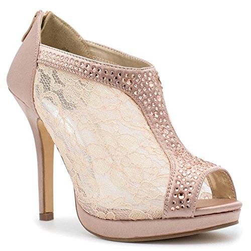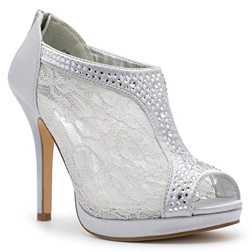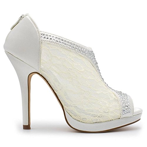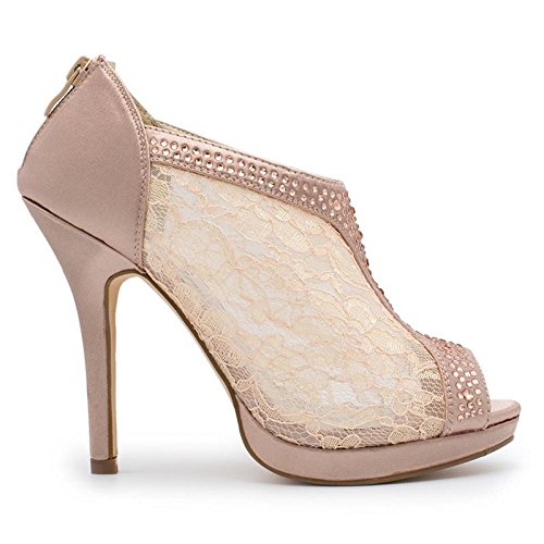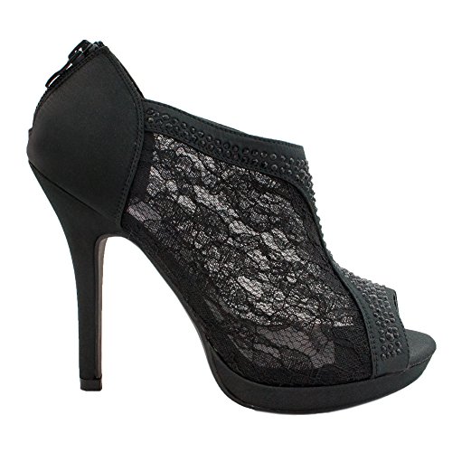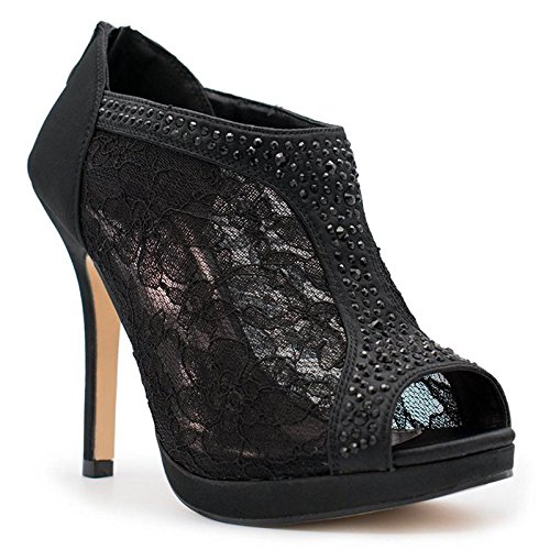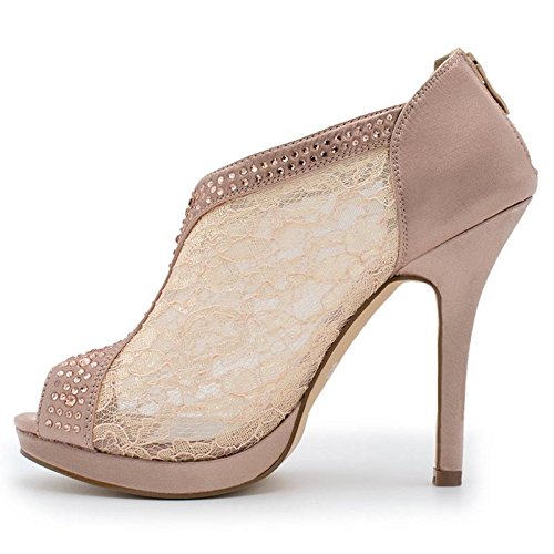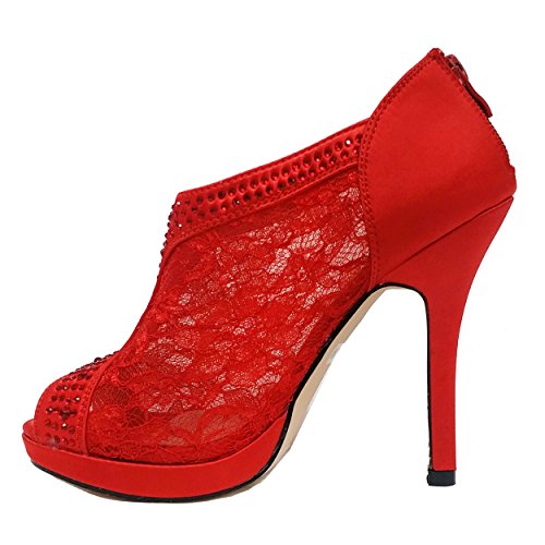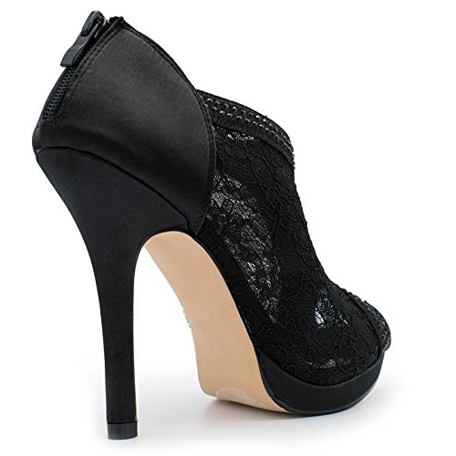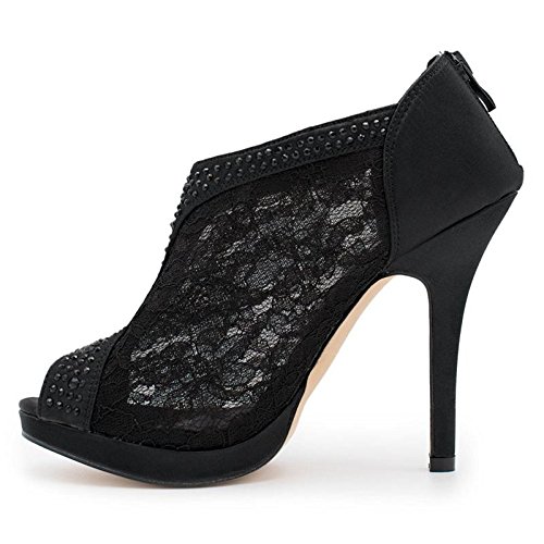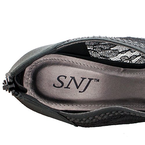 SNJ Women's Lace High Heel Platform Peep Toe Shootie