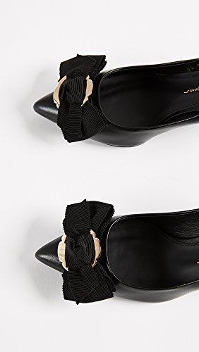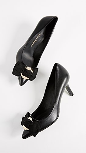 Product DescriptionGrosgrain bows accent the vamp of these pointed-toe Salvatore Ferragamo pumps. Leather sole with rubber heel patch.0