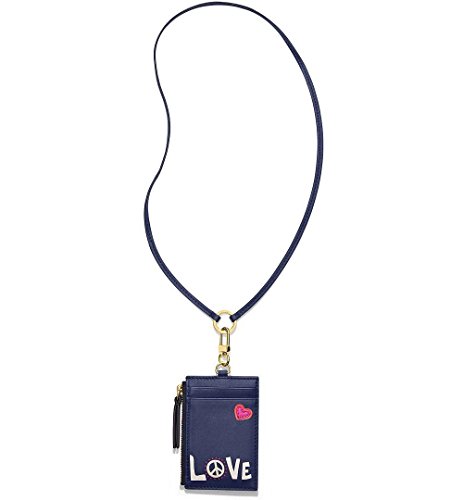 Tory Burch Lanyard Slim Card Case Leather Love Peace Navy Sea