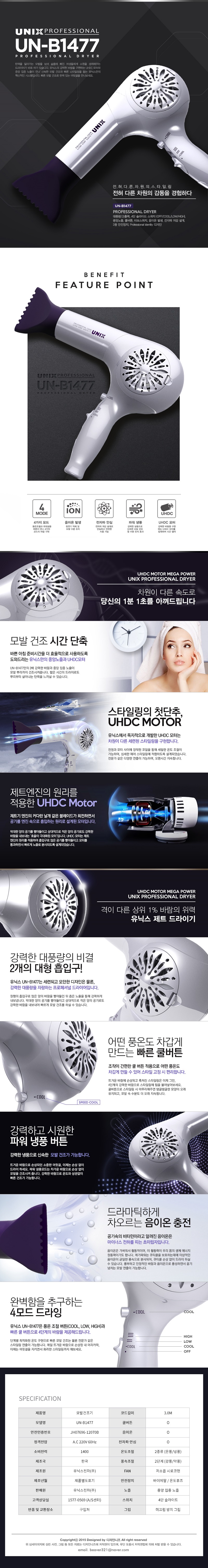 UNIX power zet hair hair dryer UN-B1477 UHDC MOTOR IRON