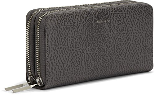 Wallet with double zip around closure. INTERIOR: 26 card slots, 4 bill compartments, zipper coin pocket.