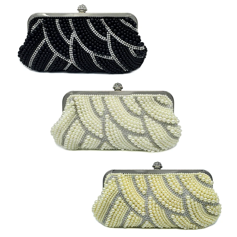 2017パールビーズ女性バッグホットファッション3色女性パールイブニングバッグ付きダイヤモンドエレガントウェディングパーティークラッチレディースバッグ