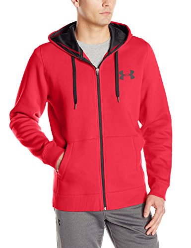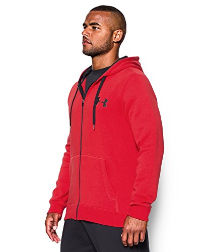 Under Armor Men's Rival Fleece Fitted Full Zip Hoodie, Red/Black, Large