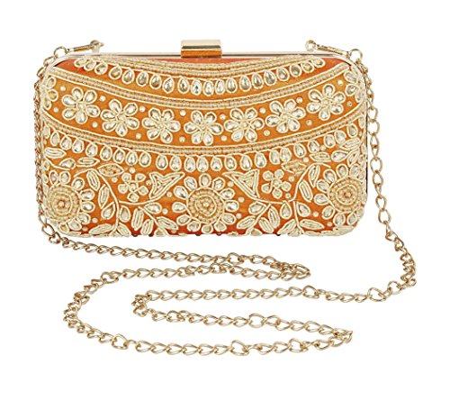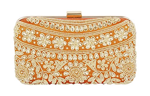 (Purse Collection)/Accessories/Handbags/DIRECT FROM USA/Purse Collection Handmade Orange Bridal Clutch With Embroidery Work Purses For Women's