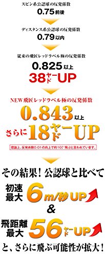 ボールにおいての「反発係数」というスペックに着目し、かつてなかった「高反発ボール」というジャンルを世界で初めて切り拓いたことと、その圧倒的な飛距離性能の違いで発売するやいなや、ゴルフ界に一大ブームを巻き起こした「元祖、高反発ボール」飛匠レッドラベル。その高反発性能をさらに追求し、世界最高反発力をさらに極めた新型超高反発ボール。それが、飛匠レッドラベル 極(きわみ)である。