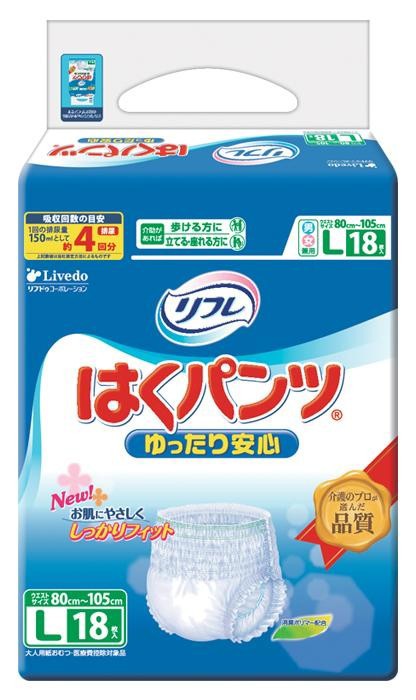 | ゆったりソフトギャザー採用で、お肌にやさしくしっかりフィットします。横モレ防止ギャザーが足まわりにフィットし、尿をせき止めます。ブルーのライン付きだから尿パッドをつける位置もわかりやすい。 |