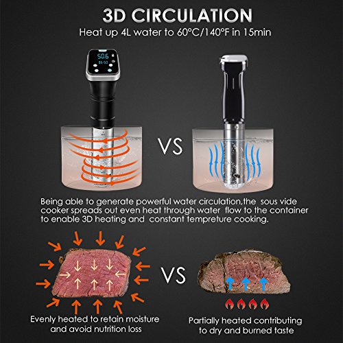 Finely Made Cookbook Included-The inculded cookbook offers detailed instructions on how to cook meats,poultry,fish,seafood,vegetables,soups, and desserts with sous vide cooking method.