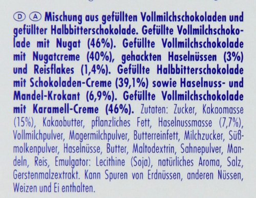 -. Feature : NEU! / Nuss in Nugatcreme / Edelnugat / Kakao Krokant / Karamell / Nur das Beste zusammengewürfelt / Mit den Sorten Edelnugat, Karamell, Nuss in Nugatcreme, Kakao-Krokant / Verpackt in einer hochwertigen Geschenkbox / Ritter Sport Schokolade gibt es in vielen leckeren Sorten!