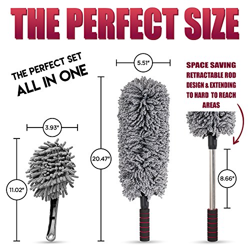 Car and Home Duster, 2 Piece Premium Exterior and Interior Vehicle Microfiber, Lint Free, Wax Free Cleaning Brushes with Zippered Case: Kit by Z&O FREE Magnetic Car Mount