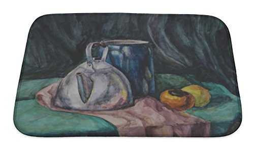 Gear New No Slip Microfiber Memory Foam Still Life with Metal Teapot & Milk Can Bath Rug Mat, 24" X 17"