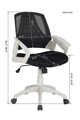-. Feature : Ergonomic breathable mid back mesh office chair, designed to provide exceptional back support and to prevent body heat and moisture build up / Eiffel Tower Shape Backrest adds sense of fashion to this chair, and also provides great lumbar support. / Pneumatic seat height adjustment, great tilt tension control. / Fashionable light grey armrests, Nylon base and Nylon casters / Easy assembly upon arrival. We provide free component-exchange in two years