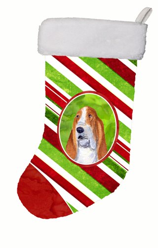 Caroline's Treasures SS4597-CS Basset Hound Winter Snowflakes Christmas Stocking, 11 x 18", Multicolor