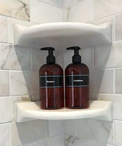 DESIGNER LOOK - We designed these labels and bottles to look very STREAMLINED, ORGANIZED and UPSCALE. It's the minimalist approach to shampoo and conditioner, without all the effort and hassle of DIY. Finally, you can impress your guests and feel more relaxed in your own bathroom without all the distracting bottles on display. And your guests will never know if you buy cheap shampoo for the guest bathroom! We won't tell them and neither will our bottles!