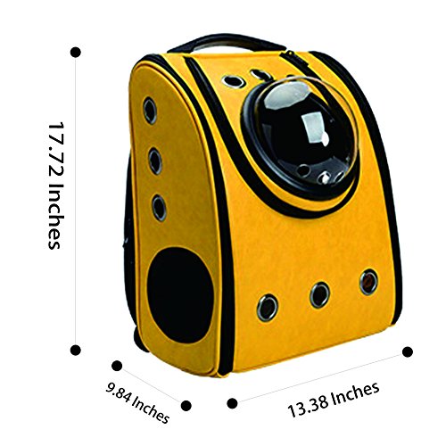 -. Binding : Misc. -. Brand : PetsU -. Feature : Perfectly sized at 13.4"L x 10.2"W x 16.9"H; Great carrying weight for your dog up to 12 pounds or cat (up to 15 lbs). / The outstanding Semi-sphere window allows your lovely inquisitive pet to see the walk-by scenery and travellers. Pet Cushion is also provided."Pets travels like a king". / Breather holes and breathable mesh are here and there over the pet carrier bag. Your dogs or cats can easily breath and somehow see the outside world, or even play with you. / Easy put-in and get-out for little dog, cat or guinea pig; Modern looking will catch lots of eyes; Secure and inserting way for both pet owner and pets to travel around together like family and friends. -. Label : PetsU -. Manufacturer : PetsU -. PackageQuantity : 1 -. ProductGroup : Pet Products -. ProductTypeName : PET_SUPPLIES -. Publisher : PetsU -. Studio : PetsU -. Title : Pet Carrier Backpack with Innovative Bubble, 17 Inches Airline Approved Travel Bag for Small Dog and Cat up to 15 Pounds