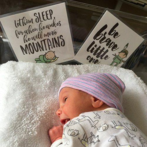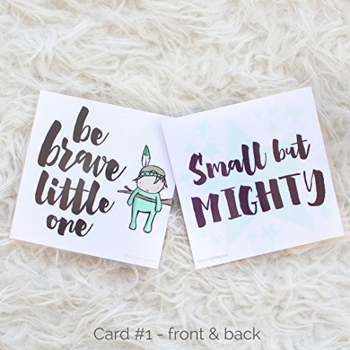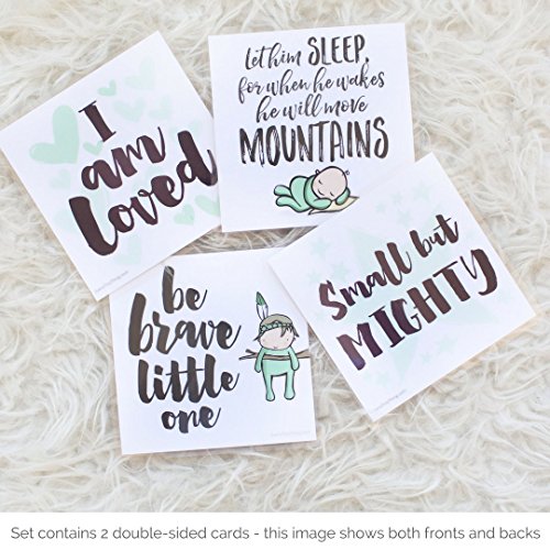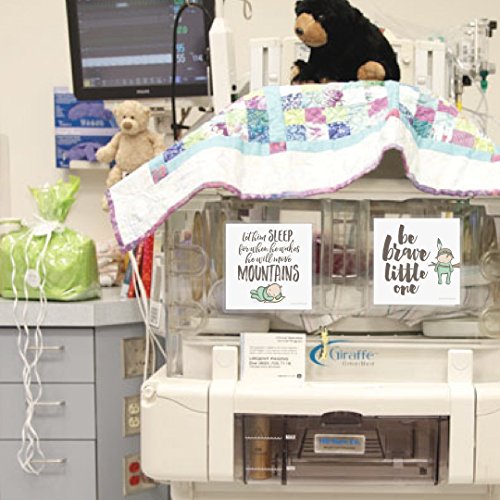 - EACH SET INCLUDES 2 DOUBLE-SIDED 5" x 5" CARDS, FOR A TOTAL OF 4 IMAGES - Babies inside incubators & cribs can see one side while parents and caregivers all have inspiring quotes and sweet images to enjoy. This set includes one card with “be brave little one” on the front and “small but mighty” on the back, and one card with “let him sleep, for when he wakes he will move mountains” on the front and “I am loved” on the back.
