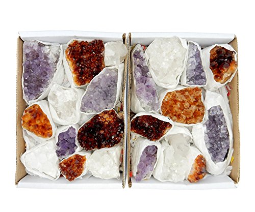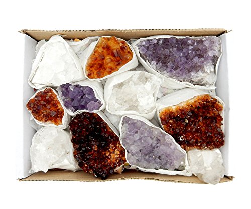 This listing is for 1 (ONE) Flat box containing amethyst citrine and crystal clusters. STOCK PHOTO. Shape and overall characteristics will slightly change since those are raw natural specimens. There are approximately 10-11 pieces per box. This is an approximation and can be a little more or less. Please Check Photos for further reference. Find more great pendants and stones in our shop. Search Rock Paradise on Amazon. We also have many bulk deals available!Feature
