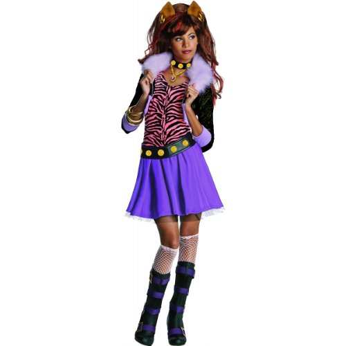 -. Binding : Toy -. Brand : Rubie's -. Color : Orange -. Department : girls -. EAN : 0680807232707 -. Feature : This Monster High costume includes faux fur collar jacket with attached shirt, skirt, belt & choker. / Our child Clawdeen Wolf comes in sizes Large, Small, Medium. / This Clawdeen Wolf is an officially licensed Monster High costume. / The boots, fishnet knee socks, jewelry and headpiece are not included with the Clawdeen Wolf costume / Please note: This item's color may vary due to inherent manufacturing variations or your computer monitor's color settings. The item you receive will be identical or substantially similar to the item pictured in this listing. -. IsAdultProduct : 0 -. Label : Rubie's Costumes -. Manufacturer : Rubie's Costumes -. MPN : 884788S -. PartNumber : 884788S -. ProductGroup : Apparel -. ProductTypeName : CHILDRENS_COSTUME -. Publisher : Rubie's Costumes -. Size : Small -. Studio : Rubie's Costumes -. Title : Clawdeen Wolf Costume - Small -. UPC : 680807232707