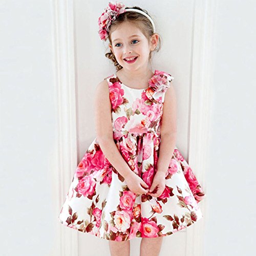 かわいいウエストラインの花が飾られ、素敵なリトルプリンセスワンピースです。