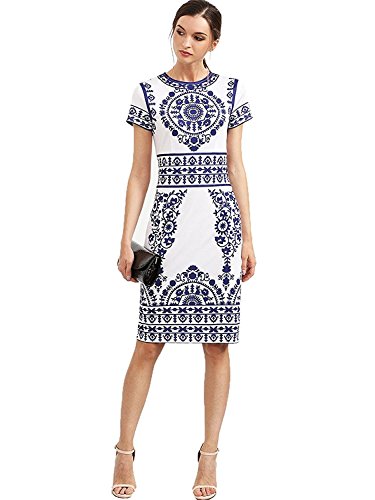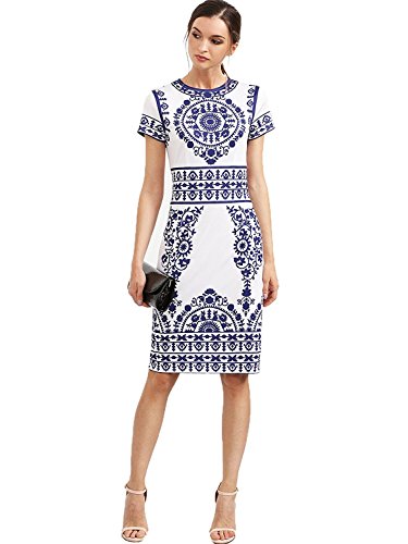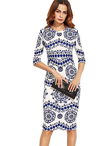 Pencil,Print,Three Quarter Length Sleeve,Round Neck