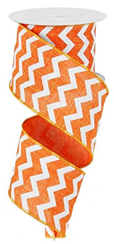 Chevron Wired Edge Ribbon (2.5", Orange White) - 10 Yards