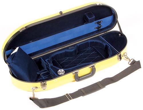 -. Feature : 4/4 Violin Size - Yellow Fiberglass Shell - Protective Yellow Case Bag is Included - Beautiful Blue Velvet Interior / Instrument Suspension - Velcro Instrument Neck Restraint - Hygrometer - Humistat - Velcro Shoulder Rest Holder - 2 Bow Holders - Instrument Blanket - Tail Block Sponge / Accessory Pocket - Shoulder Strap - Subway Strap - Music Pocket - Weighs Only 6.5lbs / Beautifully Designed - Economical - Perfect For Students And Professionals Alike / Practical and professional, Bobelock cases are always a great value!
