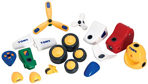 -. Binding : Toy -. Brand : TOMY -. Feature : Includes battery powered motor that attaches to the things you build. Contains 18 pieces. / Hook up several different parts to the power pack, then turn it on and watch your creation actually move. / Includes 18 chunky pieces. / Compatible with other Constructables Building Sets, sold separately. / For Ages 3 years and up -. Label : Tomy International (RC2) -. Manufacturer : Tomy International (RC2) -. Model : T3950-P -. ProductGroup : Toy -. ProductTypeName : TOYS_AND_GAMES -. Publisher : Tomy International (RC2) -. Studio : Tomy International (RC2) -. Title : Constructables Motorized Building Dinos Playset