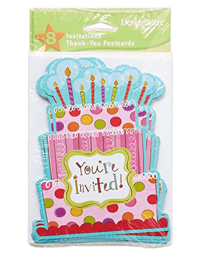 American Greetings 645416388146 8 Count Party Supplies Sweet Stuff Invite and Thank You Combo Pack, Pink