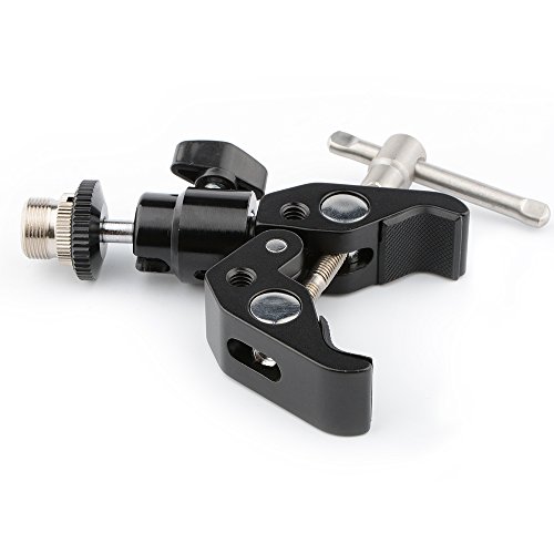-. Feature : 抜群なデザイン:普通なスーパークランプがネジ穴二つだけより、CAMVATE製が1/4"-20 五つ 3/8"-16 一つです。使い方が意外多いので欧米まで人気がある / ボールヘッド:オス5/8”-27変換1/4”-20ネジ付き、360度回転90度傾斜可能 自由に取付け/調整/移動できます。 / 5/8”ボールヘッド端がマイクマウント、スタンド、他の5/8”メス&1/4”オス付きのカメラアクセサリーに適用します。 / クランプが棚、平面グラス、十字パイプ、金属、卓など様々平面に固定できます。 / 荷重:1.5kg 最大拡張さ:54mm 素材:アルミニウム&金属 、いい仕上げ