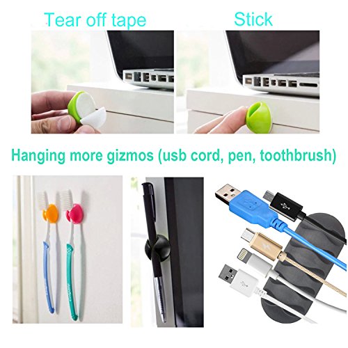 Multipurpose cable clips organizer - Use for power cords, charging cables, USB cords, cell phone chargers, audio cables, headphones, etc. Applications: power cords, charging cables, USB cords, cell phone chargers, audio cables, headphones, etc.