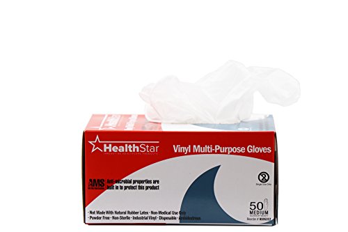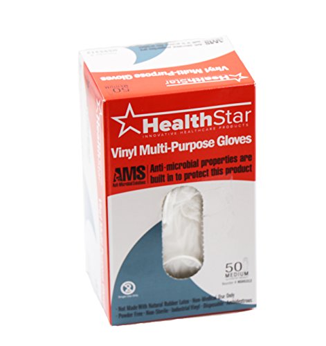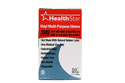 Healthstar Anti-microbial Vinyl Multi-Purpose glove, Medium, Disposable, Powder Free, Industrial Quality, Comfortable (Box of 50)
