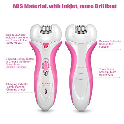 SAFETY COMES FIRST: Approved by CE international safety standards. Has 2 level rolling speeds for all skin preference or sensitive skin plus an illuminating light for hard to see hair. Its also easy to handle and has 4 replaceable heads: the Callus remover head, Epilator head, Clipper head, and Shaver head.