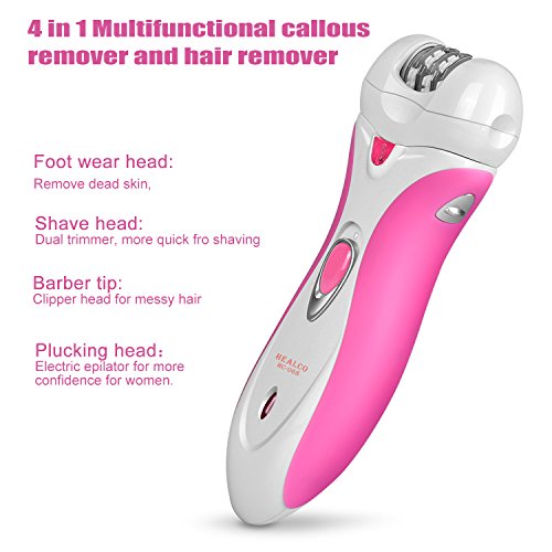4-IN-1 MULTI-FUNCTIONAL DEVICE: Has Callus remover to clear all ugly, hard skin quickly leaving more tranquil, and rejuvenated skin, Clipper for trimming longer hair and allow painless epilation, Epilator to remove short hair easily, Shaver with sharp duo integrated trimmers for swift, smooth hair shave.
