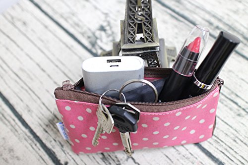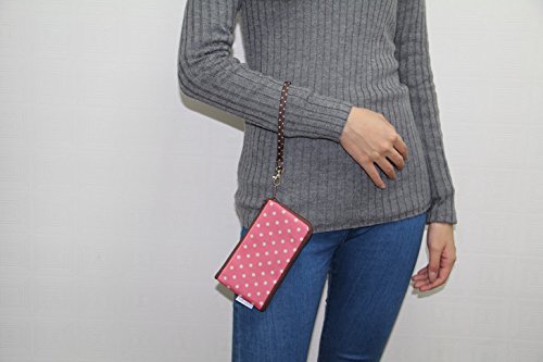 Tainada TA2Z05WP03 Smartphone Wristlet Pouch, Dual Layers Zipper Purse, Shockproof Water Repellent Wristlet Bag for iPhone 7/6s/6, Samsung Galaxy 7/6 and More, Polka Dot - Pink