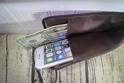 One zip double slots cushioned pocket to store your smartphone up to 5.2", cash, tickets, credit cards, etc. and one side zip with two compartments for your coins, charging cable, keys, earphone, power bank, small cosmetics accessories, etc.