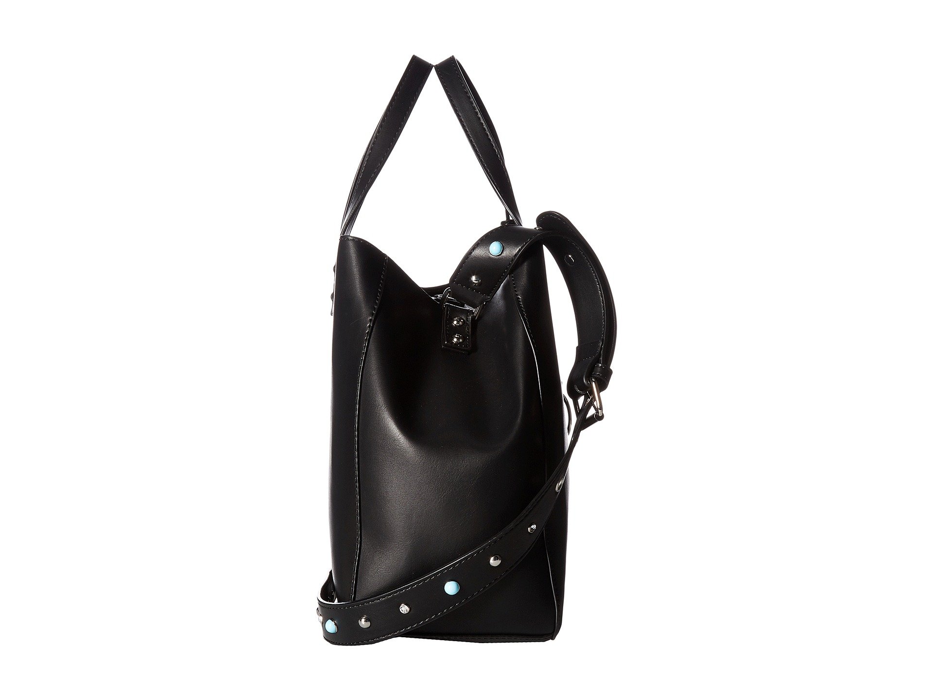 | Product Information SKU: #9021697Plenty of room and most importantly, style!Faux leather construction.Dual handles.Crossbody strap.Exterior boasts metal decor.Flat bottom.Interior features zipper pocket and slip pockets.Imported.This product may have a manufacturer's warranty. Please visit the manufacturer's website or contact us at warranty@support.zappos.com for full manufacturer warranty details.Measurements: Bottom Width: 10 in Depth: 5 in Height: 10 in Strap Length: 48 in Strap Drop: 22 in Handle Length: 14 in Handle Drop: 5 in Weight: 1 lb 4 oz |