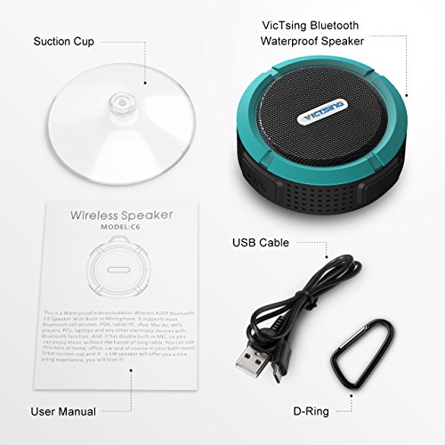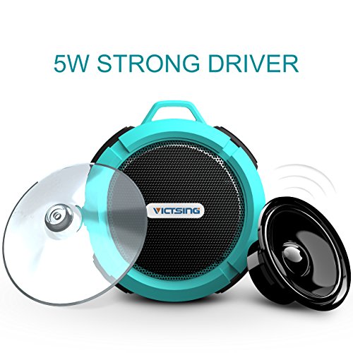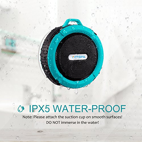 VicTsing Dusche Lautsprecher, Wireless wasserdichter Lautsprecher mit 5W Treiber, Saugnapf, eingebautes Mikrofon, Freisprecheinrichtung