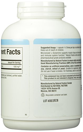 -. Title : Natural Factors - Micronized L-Glutamine Free Form Amino Acid 1000mg - Support for Muscle Tissue & Immune System
