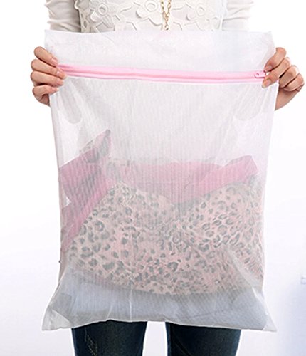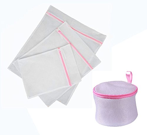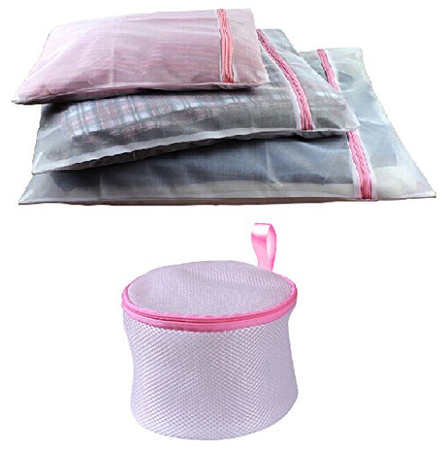 FashionBoutique High Quality Set of 4 wash bags set - THREE Different Sizes Big Washing-clothes Bags + ONE Bra Wash Bag (Pink Zipper)