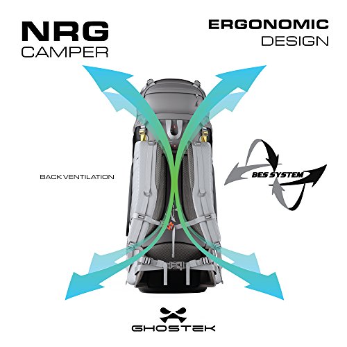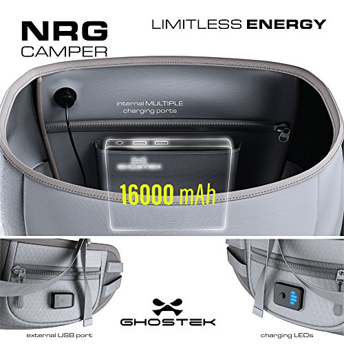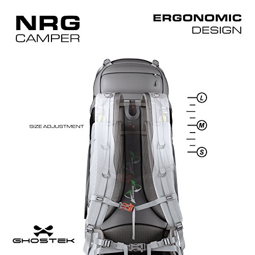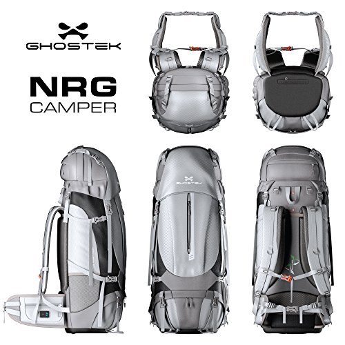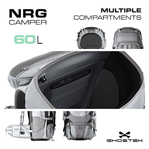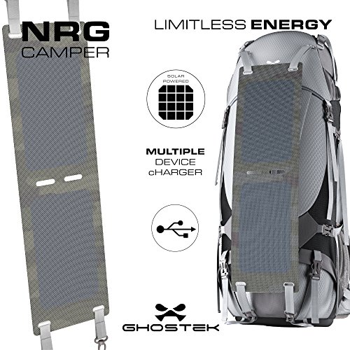 (Ghostek)/Accessories/Luggage, Bags Travel/DIRECT FROM USA/Ghostek NRGcamper 60 Liter Hiking Backpack with Rain Cover 11W Solar Panel for Outdoor Campin...