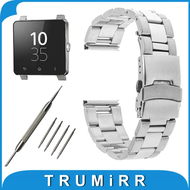 | [해외] 24 미리메터 스테인레스 스틸 시계 밴드 sony smartwatch 2 sw2 안전 버클 스트랩 손목 벨트 팔찌 블랙 실버 골드 + 봄 바 |