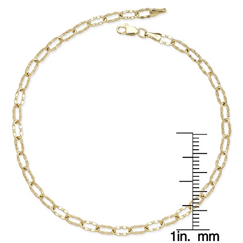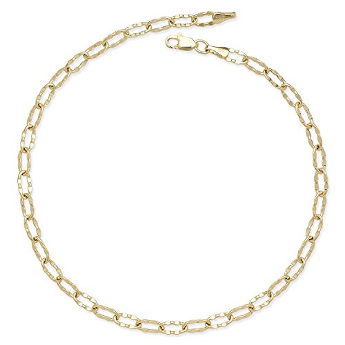 14k Gold 10-inch Flat Hammered Oval Link Chain Anklet (yellow or white) (yellow-gold)