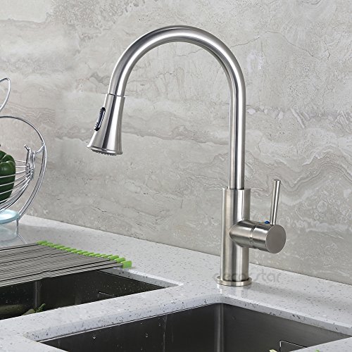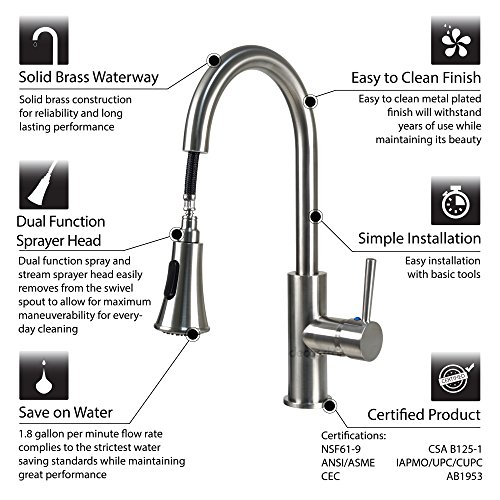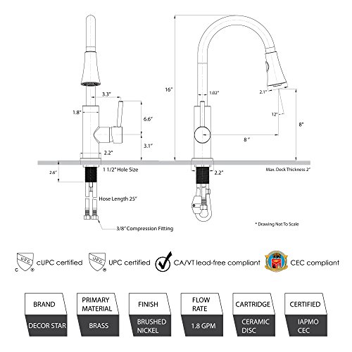 Decor Star TPC11-TB Contemporary 16" Pull Down Spray Kitchen Sink Faucet cUPC NSF AB 1953 Lead-Free Brushed Nickel