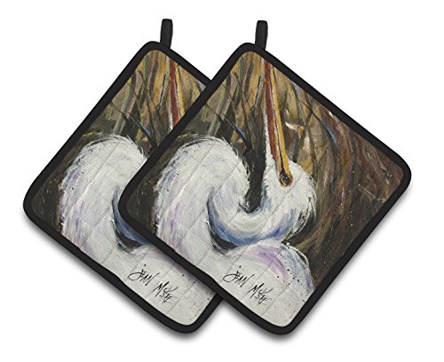 Caroline's Treasures White Egret Pair of Pot Holders JMK1214PTHD, 7.5HX7.5W, Multicolor