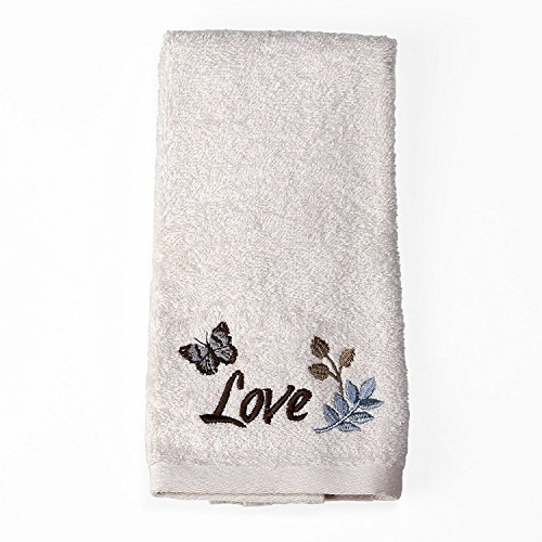 Studio : Saturday Knight Ltd Publisher : Saturday Knight Ltd Binding : Kitchen Product Description The faith fingertip towel is oatmeal colored with the word love, a butterfly and leaf details embroidered onto the towel. Faith towel is soft and absorbent cotton that is machine washable and dryable. 0