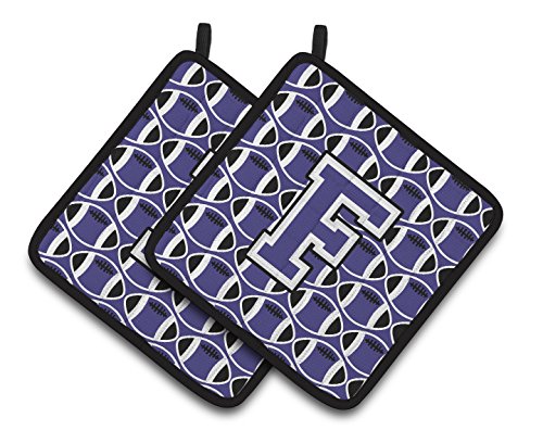 Caroline's Treasures Letter F Football Purple & White Pair of Pot Holders CJ1068-FPTHD, 7.5HX7.5W, Multicolor