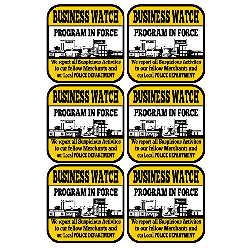 Best Business Neighborhood Watch Sticker for Indoor or Outdoor use Long Lasting Weatherproof Window and Door Warning 4 x 4 in. 6 pack Laminated Vinyl Sticker with FREE 1yr Warranty Made in USA