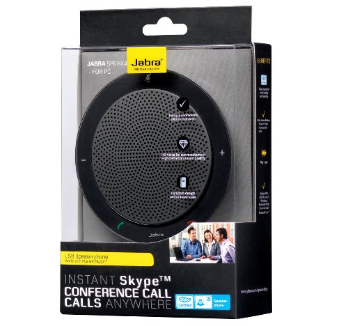 Your Portable UC Conference Room. Jabra SPEAK 410 is a speakerphone designed for consumers with a need for audio conferencing. Its compact design and travel case make it easy to carry around, and an integrated USB cable ensures quick set-up without the risk of losing cables. Thanks to advanced Digital Signal Processing, Jabra SPEAK 410 provides crystal-clear audio with true wideband sound quality, so it's ideal for Skype or Microsoft Lync internet calls. The powerful speaker and Omni-directional microphone allows participants to clearly hear and be heard, no matter where they are sitting in the room. It also comes with a 3.5mm headset port that allows the user to switch from a conference call to a private conversation. All these features make it the perfect solution for spontaneous conferencing and collaboration.Feature