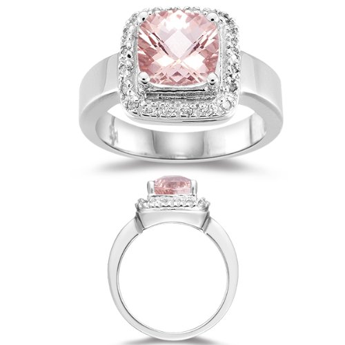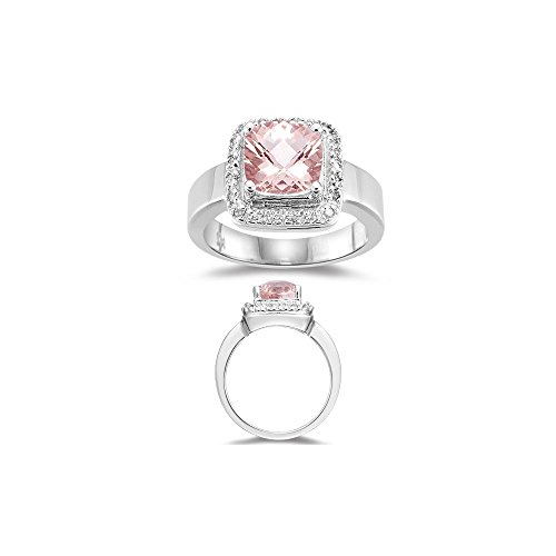 -. Title : Halo 0.09 Cts Diamond & 1.62 Cts of 8mm AA Morganite Ring in 14K White Gold