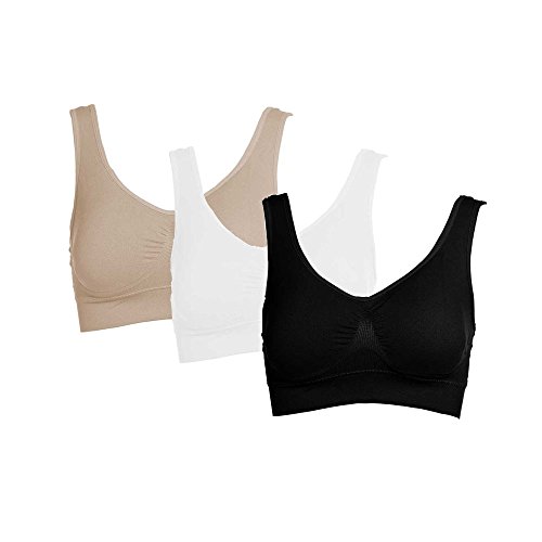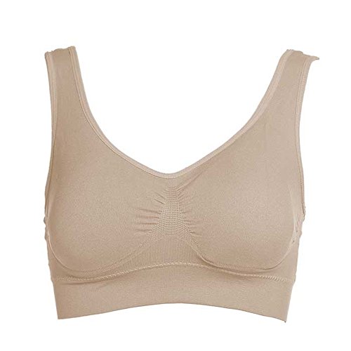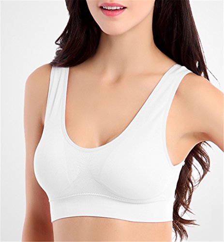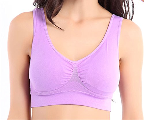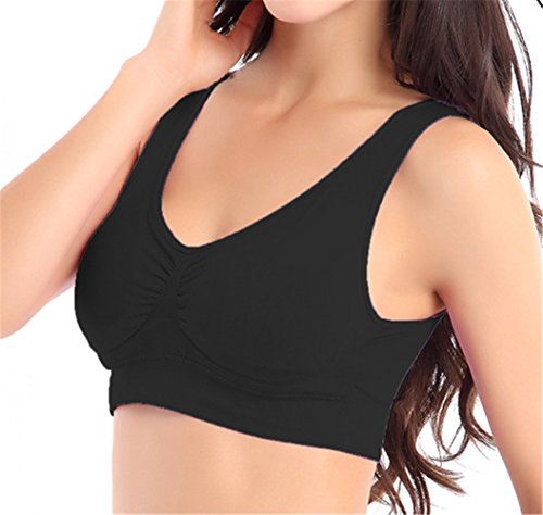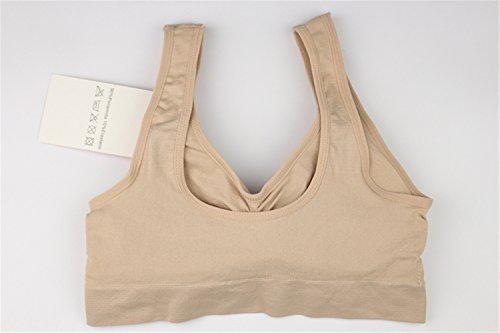 -. Feature : Farbic: 90% Nylon and 10% Spandex; Quick drying, Soft, breathable and comfortable / Features: This kind of bra is designed for Light to Medium impact activities. Wide double layer can decrease your pressure. It is suitable for yoga,sports,even sleeping.Removable pads are easy to take out / Size: This seamless bra has five sizes, from S to XXL.There will be one fit you well. Pack of 3 is avaliable / Design: No wires, clips, hooks or straps to adjust / Wash: Hand wash recommended.If you want to wash it by Washing machine,please remove the pads before you wash the bras
