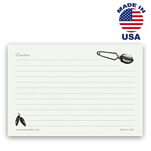 - 50 identical cards. Size 4 x 6 inches (10 x 15 cm). The cards fit most recipe boxes and books.